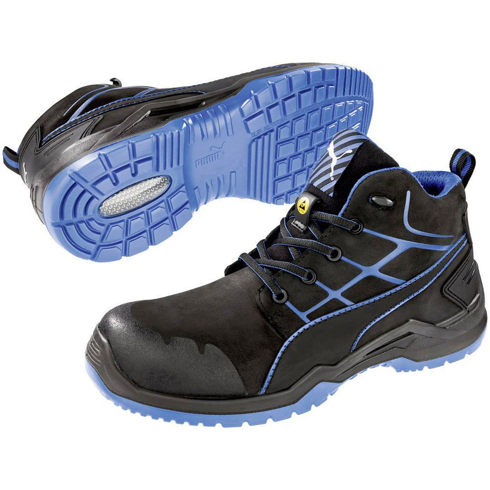 Puma Krypton Blue Mid 634200-41 safety work boots are designed for workplace protection with ESD safety features. These black and blue boots provide S3 level safety, suitable for construction and industrial environments. The footwear is ideal for ensuring foot safety on various worksites.