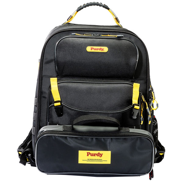 The Purdy® Painter's Backpack has been designed by pros, for pros. Made from a weather-resistant fabric exterior with rugged metal zippers, it is fitted with rubberised feet that prevent the bag from tipping over, and front straps and buckles provide a secure fit. The design enables even weight distribution for easy carrying to and from jobsites, and it provides an organisational storage system for jobsite painting tools.