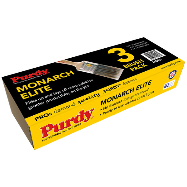 This 3 Piece Purdy® Monarch™ Elite™ Paint Brush Set contains: