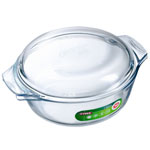 A traditional, clear, round 2 litre casserole dish from Pyrex. Pyrex toughened glassware is dishwasher, freezer, oven and microwave safe. It has a high resistance to heat and physical shocks and its ultra-smooth surface makes it extra hygienic and highly stain-resistant.