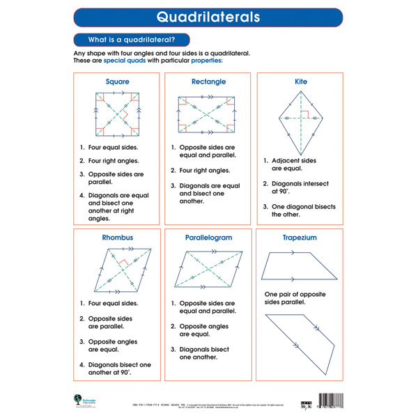 This wall chart explains and gives examples of the different types of quadrilateral.