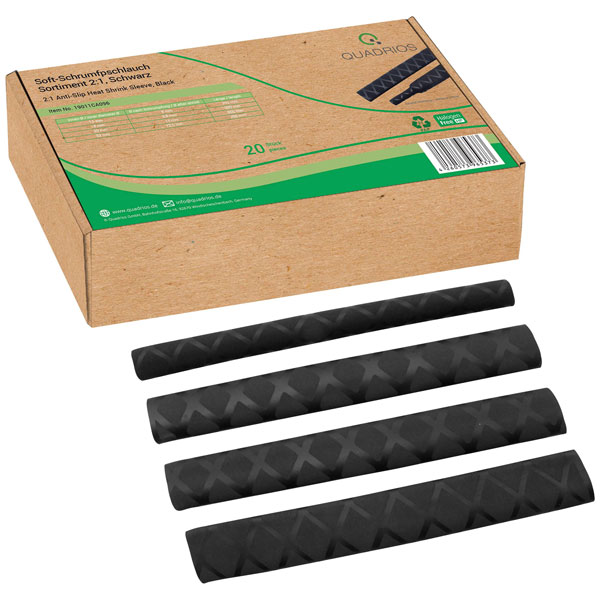 The Quadrios Heatshrink Set 19011CA096 includes 20 heatshrink parts with a 2:1 shrinkage ratio. It provides excellent insulation and protection for electrical wires and components. This product is ideal for use in automotive, industrial, and household wiring applications.