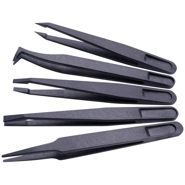 Quadrios 1903EC095 ESD Tweezers 5pc Conductive Plastic Flat Curved