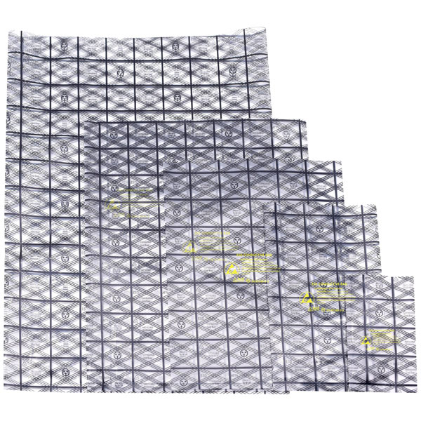 Quadrios 1903EC106 is a set of 10 electrostatic discharge (ESD) bags, designed specifically for the safeguarding of electronic components susceptible to damage from static electricity. Engineered with conductive materials, these 75 x 125 mm bags provide effective ESD shielding, ensuring the integrity of sensitive components such as complementary metal-oxide-semiconductor (CMOS) devices during transport and storage. These antistatic packaging solutions are suitable for use in environments requiring ESD protection, such as electronics manufacturing and assembly facilities. Featuring an earth connector, they serve to dissipate static charges, thereby maintaining the operational reliability of components housed within. These shielded bags play a critical role in maintaining ESD-safe conditions in electrostatic protective areas (EPA).