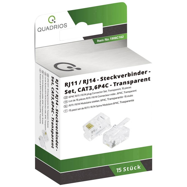 Quadrios 1906C162 Modular Plug Set 6P4C Unshielded 15 Pieces
