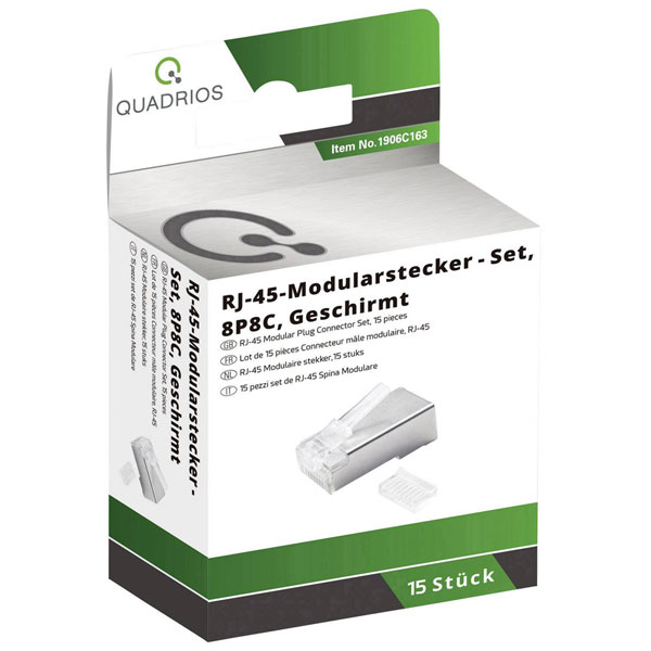 Quadrios 1906C163 Modular Plug Set 8P8C Shielded 15 Pcs Straight RJ45