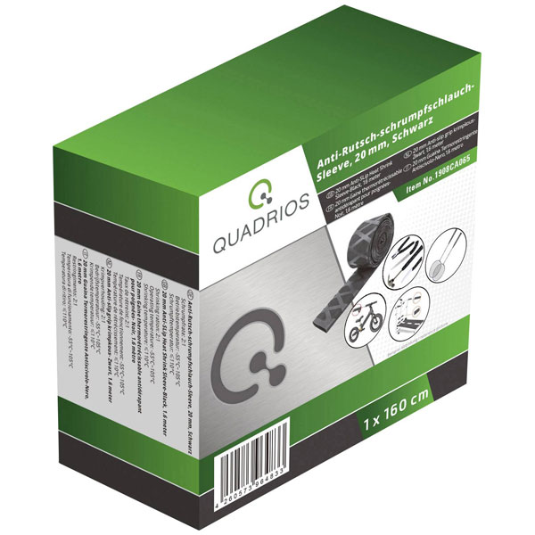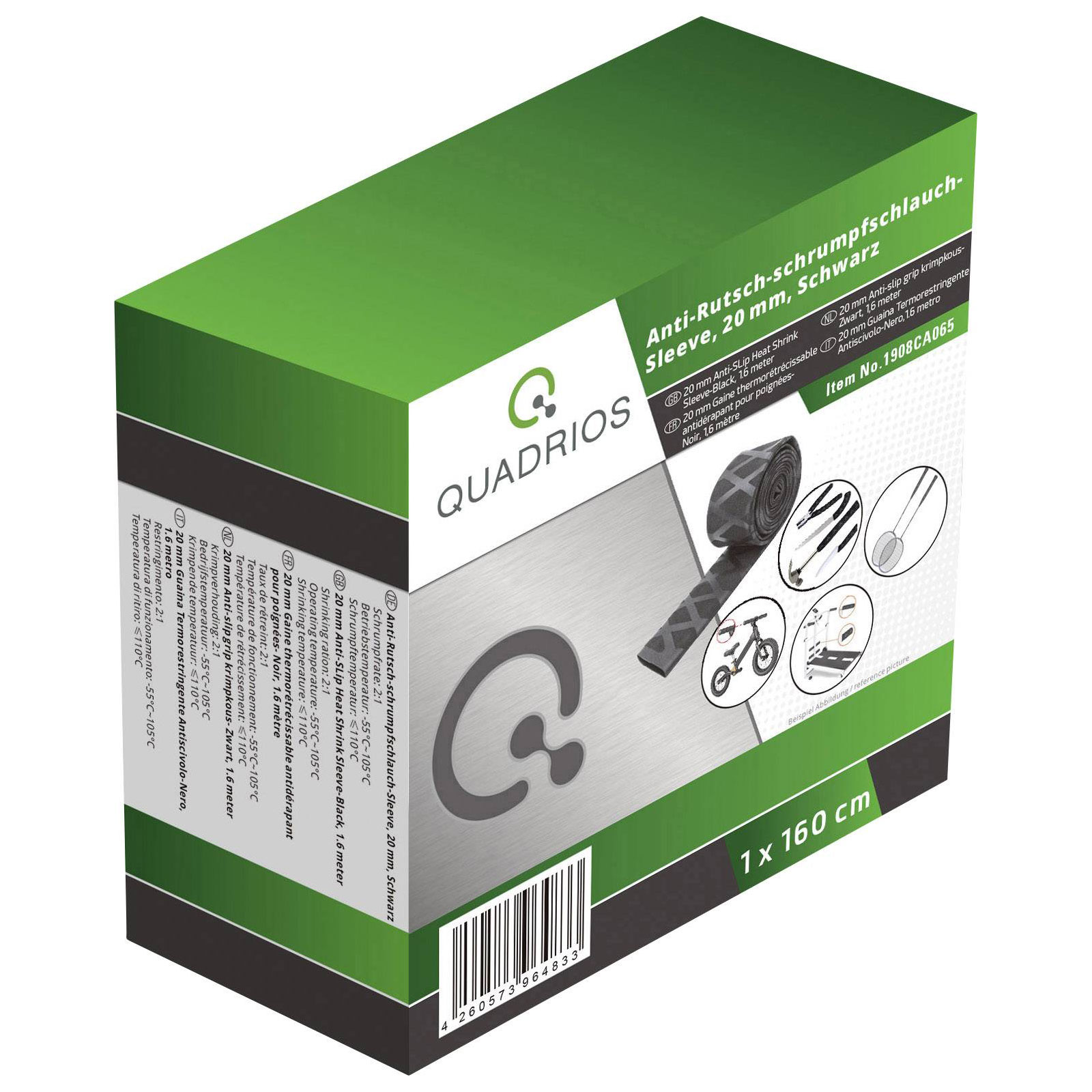 The Quadrios 1908CA065 heat shrink without adhesive is a durable protective tubing in black with a diameter of 20 mm that shrinks to 10 mm. With a shrinkage ratio of 2:1, it is supplied in a length of 1.6 metres, making it ideal for insulating wires and preventing damage from abrasion in electrical applications. Manufactured by Quadrios, this product is designed for easy installation and use in various environments where a seamless fit is required.