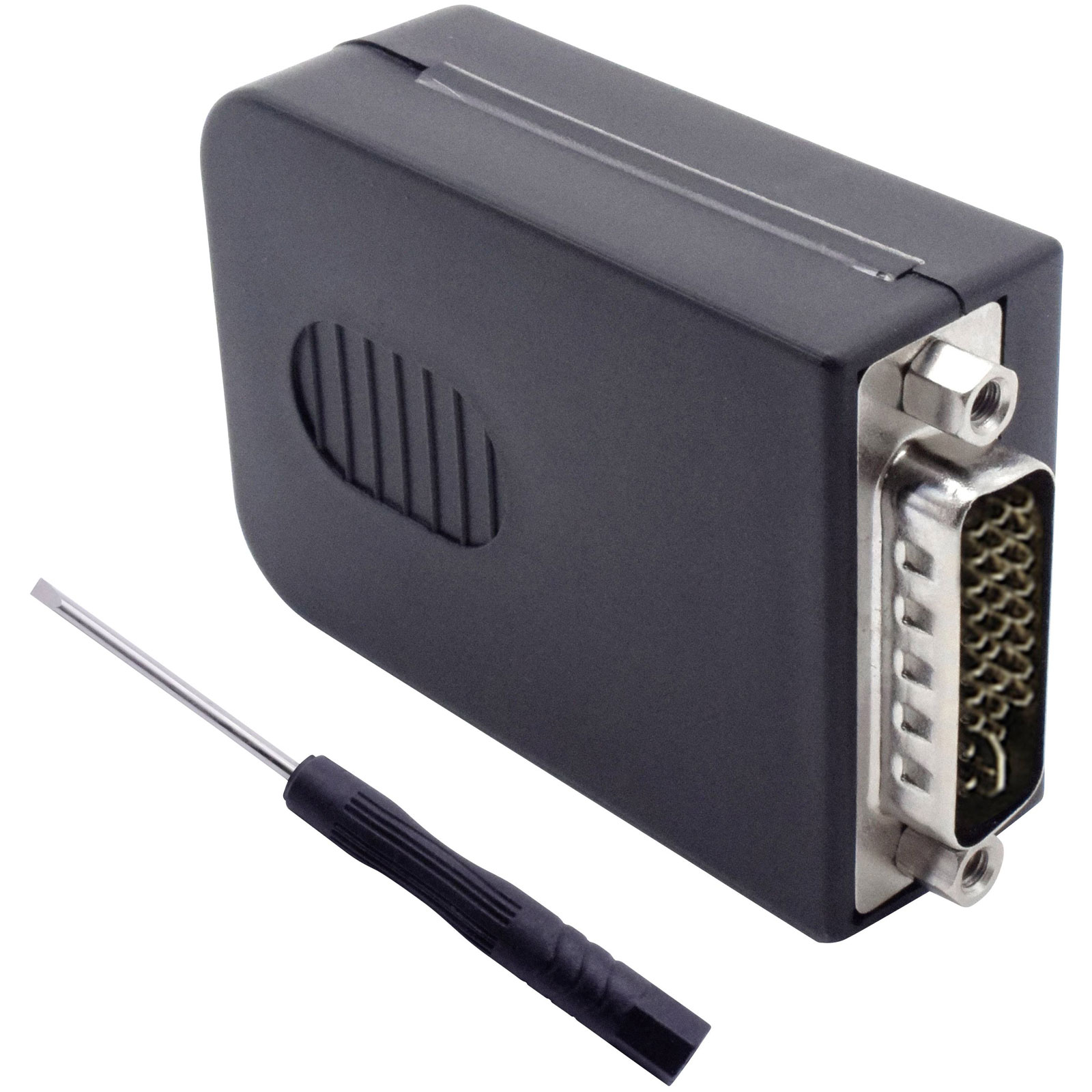 Quadrios manufactures the 2001C223 DVI connector plug, which is a straight, black connector with 30 pins. It is typically used for digital video interfaces in computing and electronic devices. This part is suitable for professional and personal video setups requiring high-quality connections.