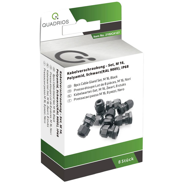 Quadrios 2102CA127 Cable Gland Set M16 PA66 Black Waterproof Versatile