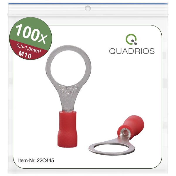Quadrios 22C445 Ring Terminal 1.5mm² 10.5mm Red Partly Insulated Set