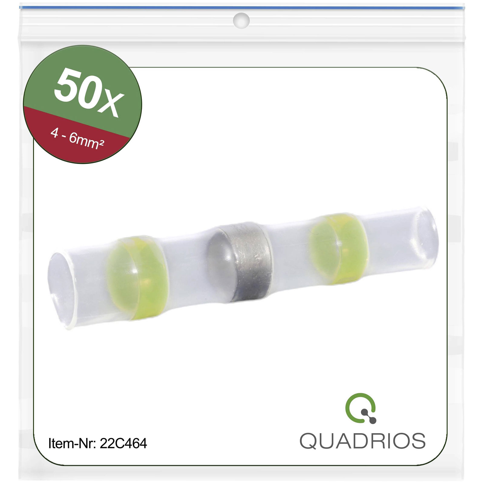 The Quadrios 22C464 Butt Joint is a crimp connector designed for creating secure electrical connections. It features insulation and heat shrink capabilities for wire sizes 4.0 mm² to 6.0 mm², ensuring durability and protection. Typically used in automotive or industrial wiring applications, it provides reliable connectivity and insulation.