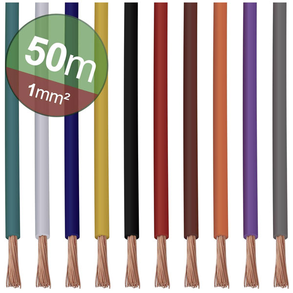 Quadrios manufactures the 22CW006 stranded wire set featuring assorted colours, each with a 1.0 mm² cross-sectional area. These braids are ideal for internal and switchboard wiring applications. The set includes various colours such as white, blue, and red, providing versatility for different wiring needs.
