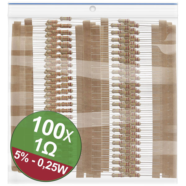 Quadrios 22P061 Carbon film resistor set 1 Ω Axial lead 0.25 W 5%