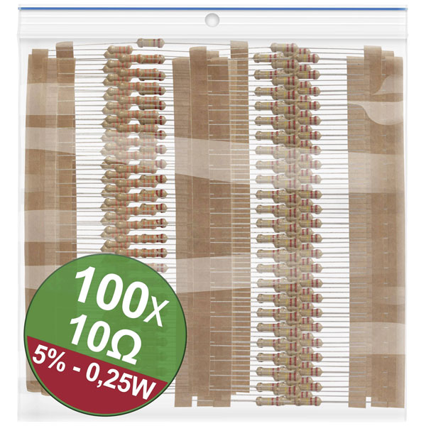 Quadrios 22P062 Carbon film resistor set 10 Ω Axial lead 0.25 W 5%