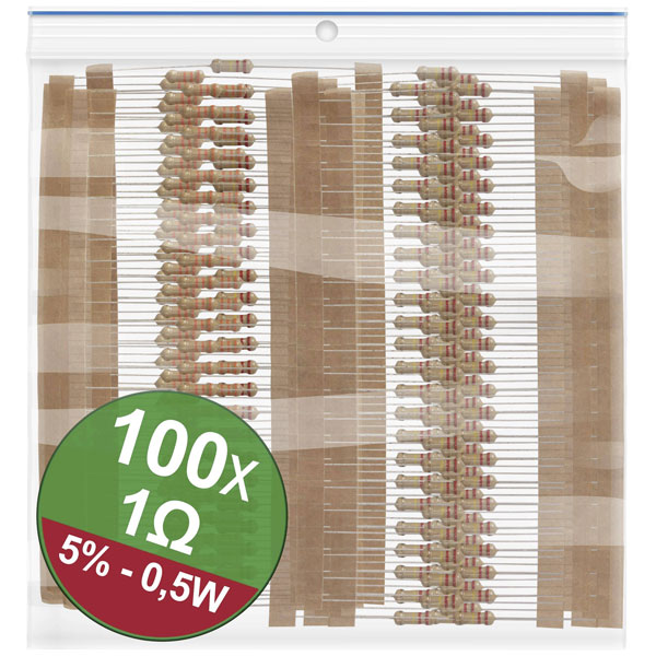 Quadrios 22P107 Carbon film resistor set 1Ω Axial lead 0.5W 5% 1 set