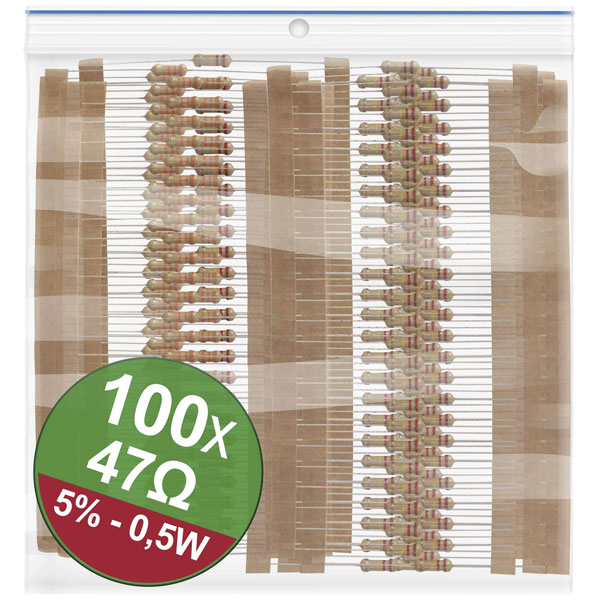 Quadrios 22P109 Carbon Film Resistor Set 47 Ω Axial Lead 0.5 W 5%