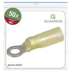 Quadrios manufactures the 23C527 ring terminals, which are partially insulated and ideally suited for automotive applications. These solder-free connectors feature a maximum cross-section of 6 mm² and a hole diameter of 5.3 mm, with a yellow insulation. They are typically used in car crimp terminal settings and are supplied in packs of 50.