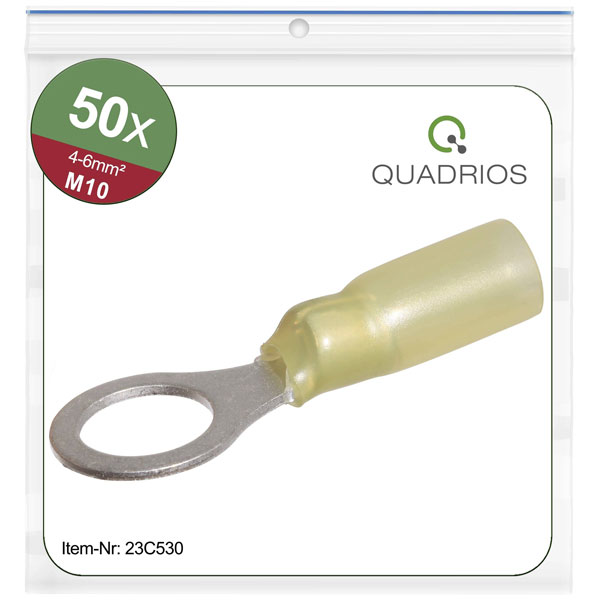 Quadrios 23C530 Ring Terminal 50 pcs 6mm² Ø10.5mm Yellow Insulated