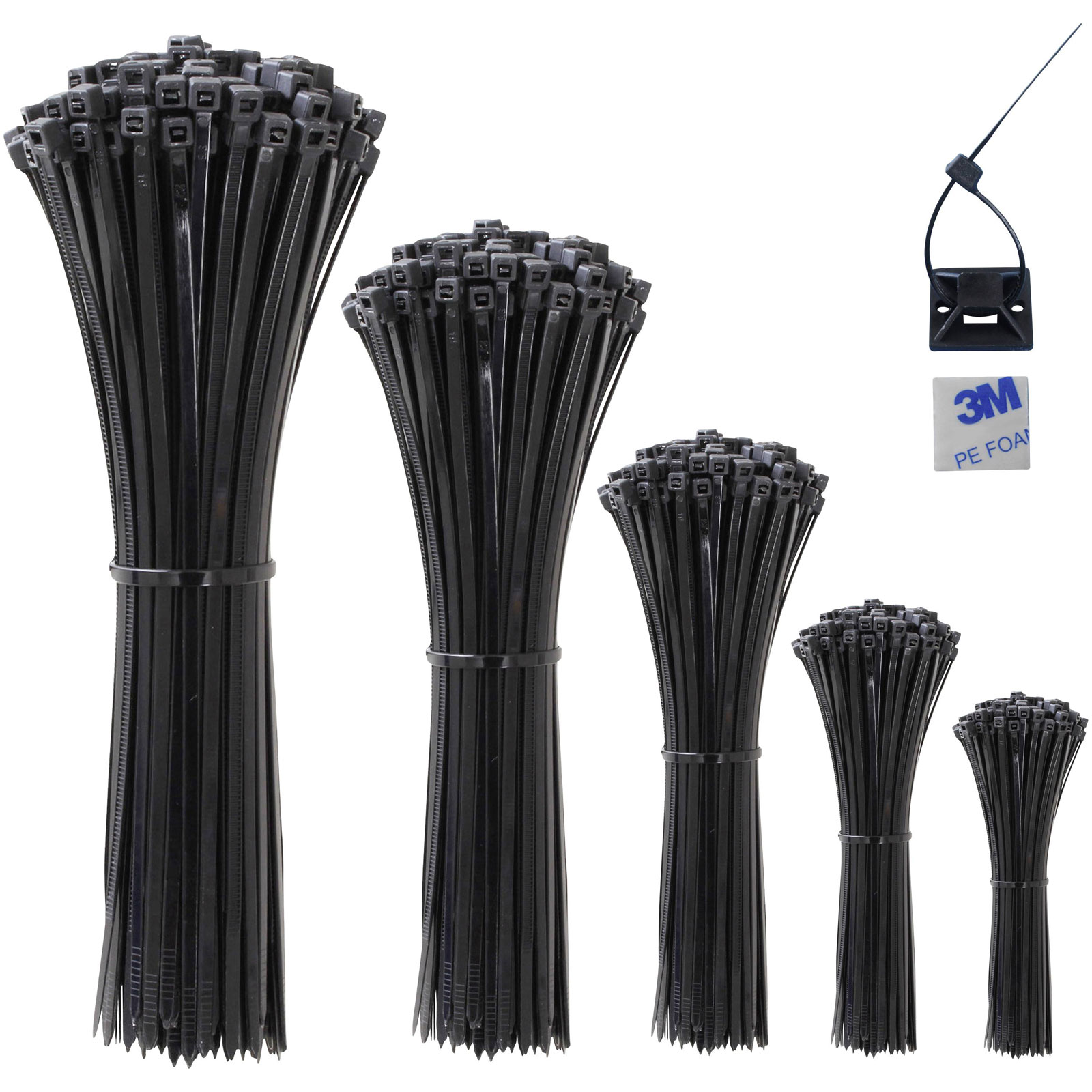 Quadrios 23CA238 Cable Tie Set Black 1020 pcs UV-Proof Polyamide Durable