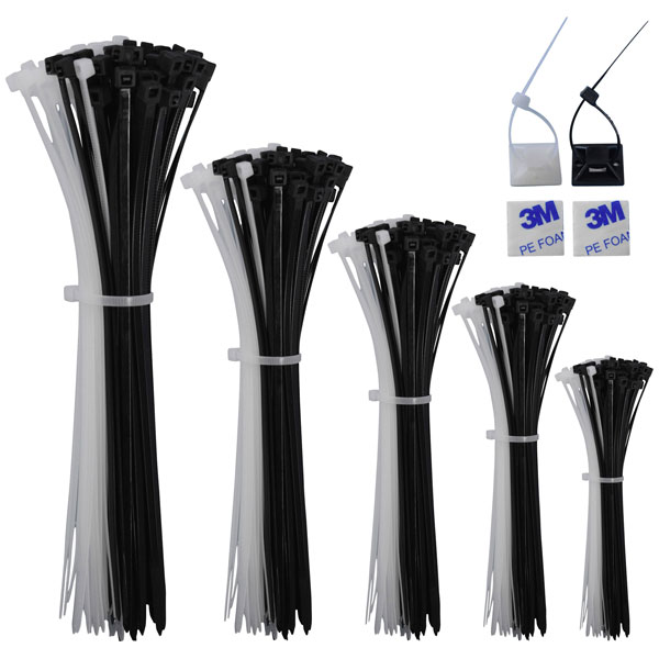 Quadrios 23CA242 Cable Tie Set 1020 pcs Black/White UV-Proof with 3M Base