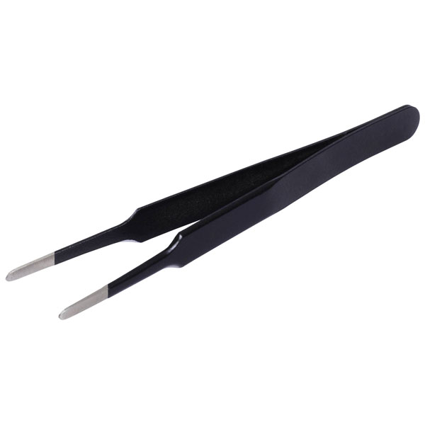 Quadrios 23EC152 ESD Tweezers Flat Rounded Steel Anti-Static Coating