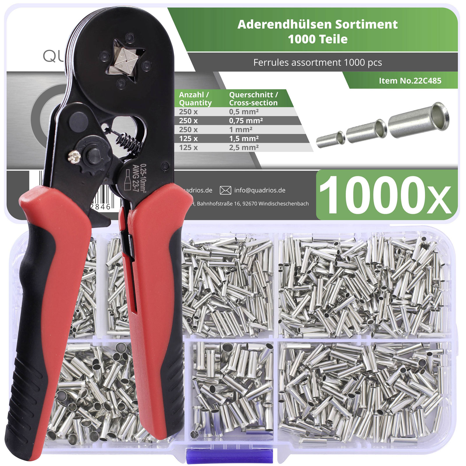 Quadrios 23T034 Ferrule Set 250 Wire End Sleeves 0.5-2.5mm² Non-Insulated