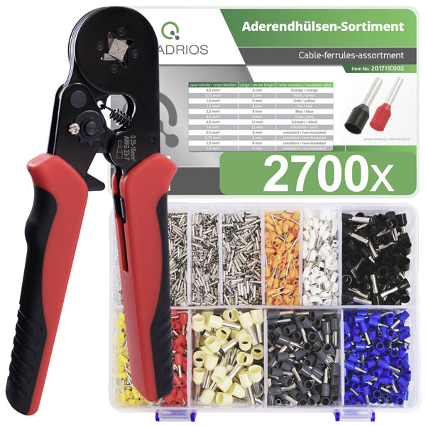 Quadrios 23T045 Ferrule Set 8 Sizes Crimping Tool Incl. Multicoloured Sleeves