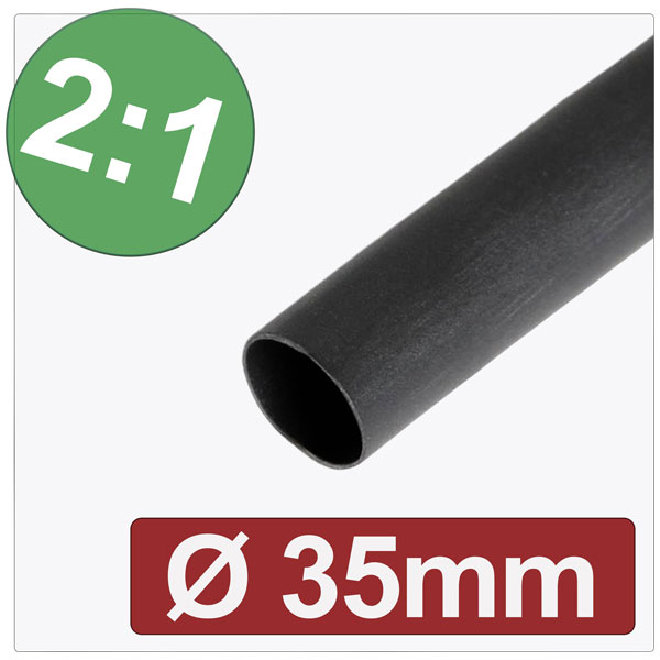 Quadrios 24CA274 Heatshrink Black 35 mm 17.50 mm 2:1 per metre Heat Shrink