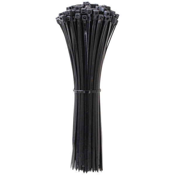Quadrios 24CA376 are cable ties designed for robust cable management applications. These ties are 450 mm long and 7.6 mm wide, capable of securing large bundles of cables effectively. Manufactured with a UV-proof construction, they are ideal for outdoor environments where exposure to sunlight is a concern. Their black colour provides a professional appearance and adds to their durability against ultraviolet damage. Typical engineering applications include securing wiring harnesses, organising cable runs in telecommunications, and bundling cables in automotive or aerospace assemblies. Provided in a pack of 100, these cable ties offer an efficient solution for maintaining orderly and secure cable installations in various settings.