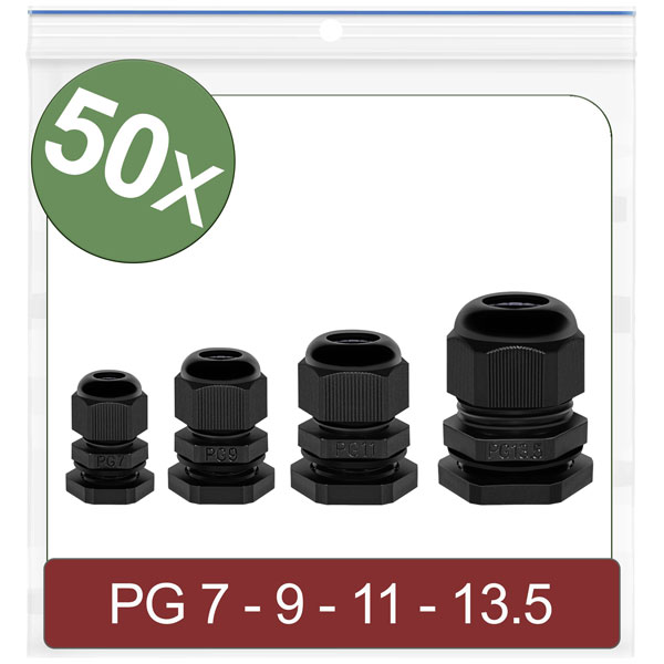 Quadrios 24CA389 Cable gland Black Polyamide 50 pcs PG7 PG9 PG11 PG13.5