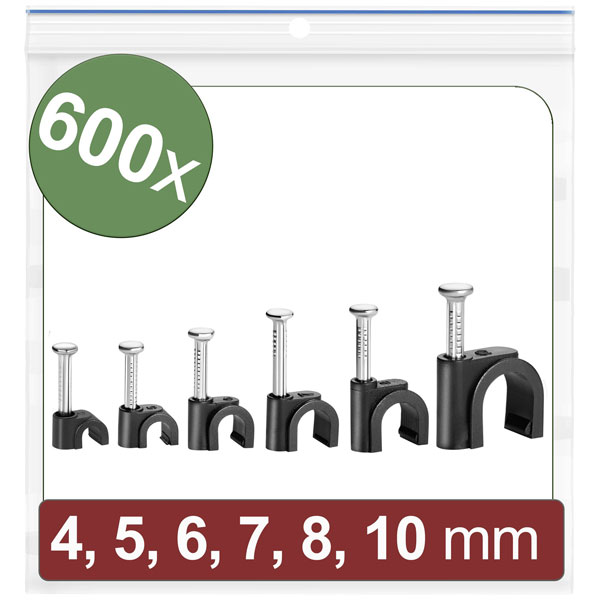 Quadrios 24CA437 Cable clips Black 600 pcs Bundle Ø range 2 to 10 mm