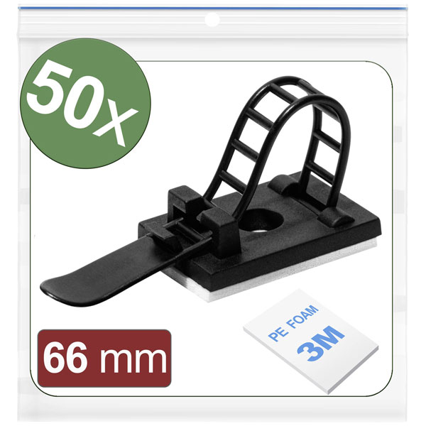 Quadrios 24CA442 Cable Clips Self-adhesive Screw fixing Black 50 pcs
