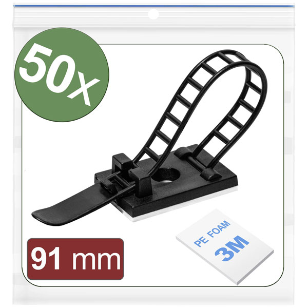 Quadrios 24CA443 Cable mount self-adhesive black 50 pcs cable clips fixings