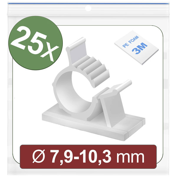 Quadrios 24CA445 Cable mount Self-adhesive Clips 7.9-10.3mm White 25 pcs