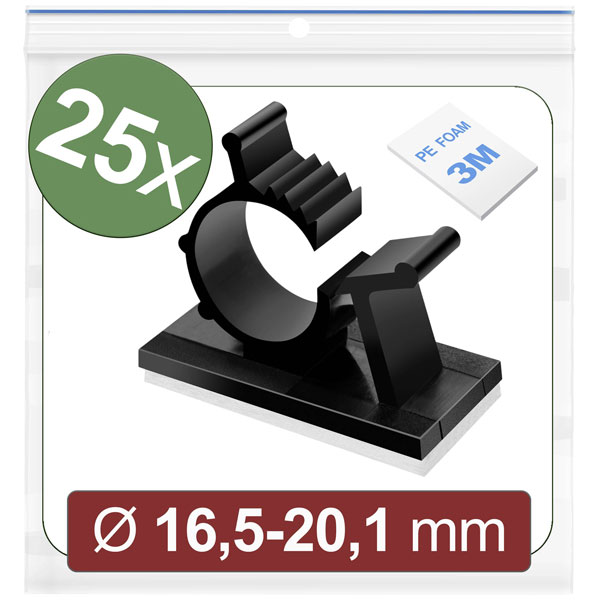 Quadrios 24CA453 offers a reliable solution for cable management through its self-adhesive cable mount design, optimally engineered for securing cables with a bundle diameter range of 16.5 to 20.1 mm. These black cable clips are manufactured to facilitate the effective organisation and routing of wires, ensuring precision and order in various installations. The robust self-adhesive backing allows for easy and permanent mounting on a variety of surfaces, making them particularly useful in environments where screwing or drilling might not be feasible. Ideal for use in electronics, automotive, and telecommunications sectors, these clips ensure that cables remain securely fastened, reducing clutter and potential safety hazards. Each pack contains 25 units, providing ample supply for both small-scale and larger applications.