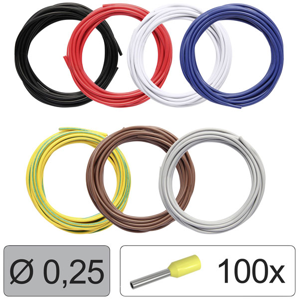 Quadrios 25CW111 is a LiFY wire set featuring a cross-sectional area of 0.25 mm² and is offered in a multicolour assortment suitable for communications and control applications. The product includes wires in black, red, white, blue, yellow-green, brown, and grey, catering to diverse wiring needs within complex electronic systems. Engineered for reliability and performance, these wires are particularly suited to tasks requiring precise control and signal transmission, ensuring efficient connectivity in machinery, automated systems, and electronic control panels. The diverse colour coding facilitates proper identification and organisation in circuit arrangements, making this set ideal for both prototyping and system integration in industrial environments.