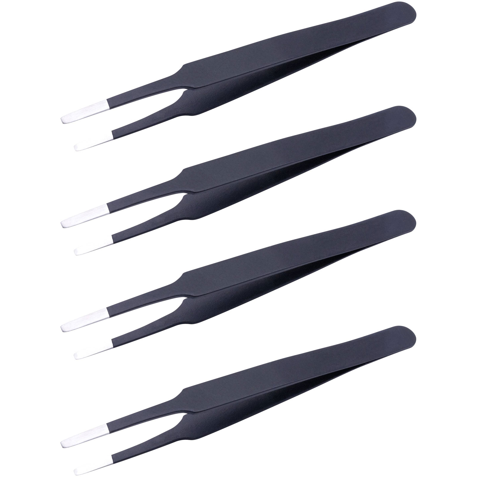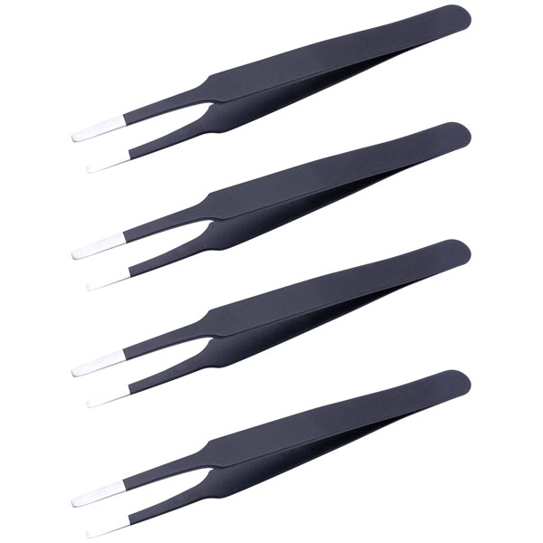 Quadrios 25EC174 ESD Tweezers Flat Tweezers Anti-static Coated 140mm Length