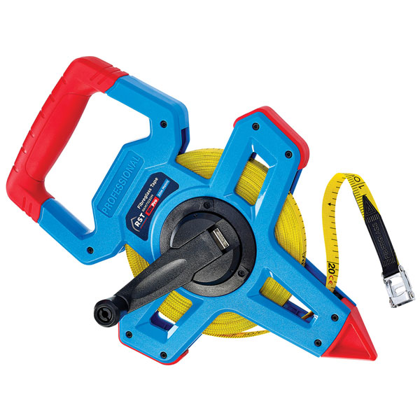 The R.S.T. Open Frame Geared Tape with a white, heavy-duty fibreglass blade which is corrosion resistant and hard-wearing. This tape has an easy grip winding handle with a 3:1 rewind ratio return. This tape has a colourful design making it easy to recognise. The claw at the end of the blade is ideal for wedging into material to keep the end secure, enabling you to read an accurate measurement.