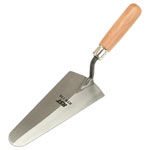 R.S.T. Gauging trowel with a traditional wooden handle and carbon steel blade. Used primarily for mixing and applying small quantities of cement.