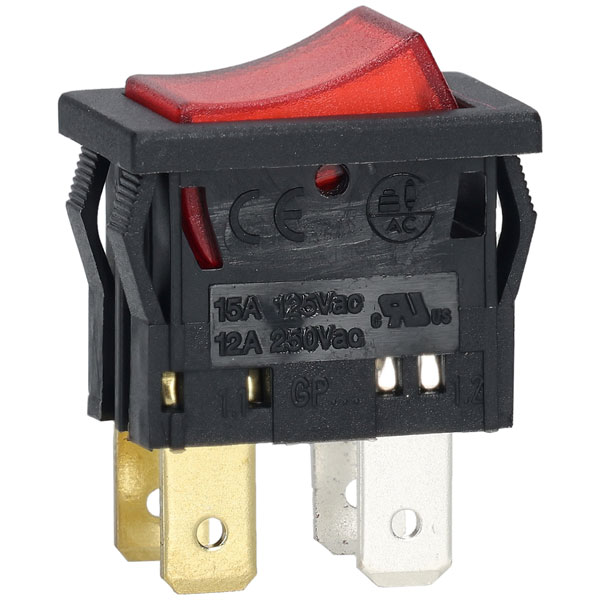 R-TECH 523186 Rocker switch, DPST, red illuminated, 12A 250V