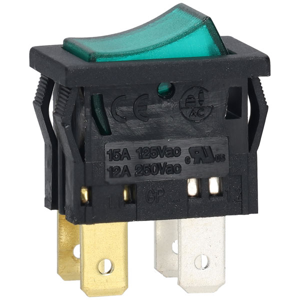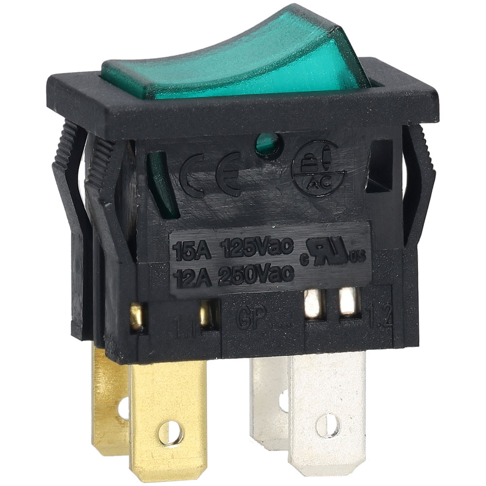 This robust ‘snap-in’ panel-mounting Green illuminated Rocker Switch has a double-pole, single-throw (DPST) configuration, ensuring reliable on-off functionality. Rated at 250V AC and 12A, it is built to handle demanding electrical loads. The switch is designed for easy installation, and its durable construction guarantees long-lasting performance. Ideal for both professional repair services and DIY enthusiasts.