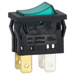 R-TECH 523188 Rocker switch, DPST, green illuminated, 12A 250V