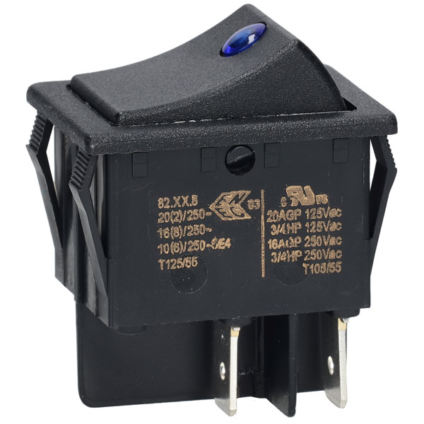 This robust ‘snap-in’ panel-mounting Blue Dot, illuminated Rocker Switch has a double-pole, single-throw (DPST) configuration, ensuring reliable on-off functionality. Rated at 250V AC and 20A, it is built to handle demanding electrical loads. The switch is designed for easy installation, and its durable construction ensures reliable performance. Suitable for a wide range of applications.