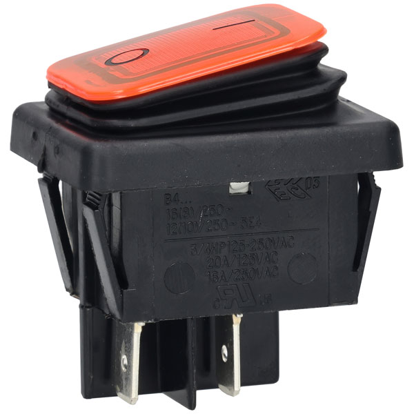 This robust ‘snap-in’ panel-mounting Red, illuminated Rocker Switch has a double-pole, single-throw (DPST) ensuring reliable on-off-on functionality and features a 0/1 legend. Rated at 24V and 20A, it is built to handle demanding electrical loads. The switch is designed for easy installation, featuring a black rubber bellows rocker design for IP65 rated protection. Its durable construction and heat and fire resistance ensures safety and durability in demanding environments.