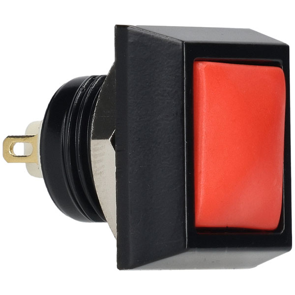 R-TECH 524641 Momentary Pushbutton Switch, SPST, 12mm Cutout,IP67, Red - Supplied with a chrome plated locking nut.