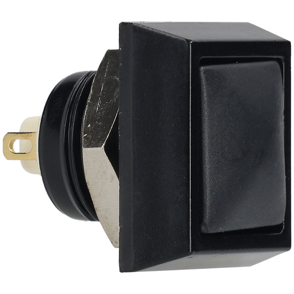 R-TECH 524642 Momentary Pushbutton Switch, SPST, 12mm Cutout,IP67, Black - Supplied with a chrome plated locking nut.