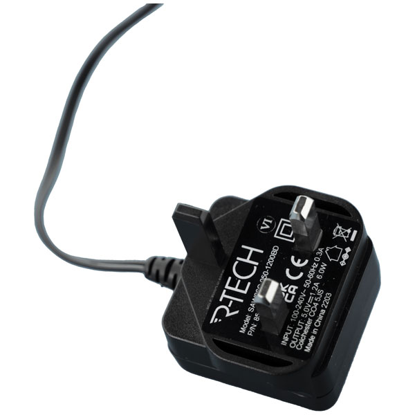 This compact designed R-TECH 5VDC 1.2A power adapter is suitable for UK socket types.