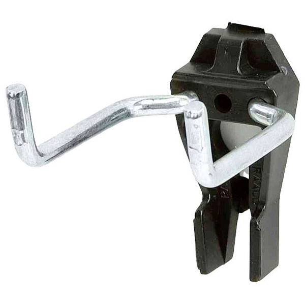 Raaco 110785 is a tool hook clip designed for holding hammers between 4-40 mm. It is part of a perforated tool board system suitable for wall storage or wall mount applications. This hook, made from perforated sheet metal, is ideal for organising tools on a tool wall storage.