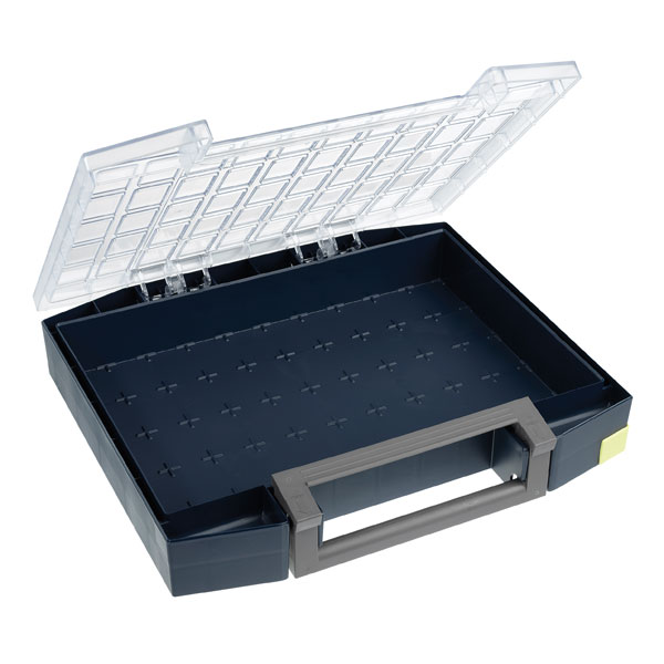 This empty box can be equipped with your choice of replaceable inserts from the range. The box is equipped with a grid in the bottom which, together with the O-profiles in the lid, hold inserts and their contents in place during transport.