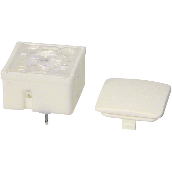 A tactile switch from Rafi. A button cap may be fitted to the non-illuminated button if alternative labelling is required or a height of 12.5 mm has to be reached. The labelling on the button cap is visible through a window in the deco film. The button cap may be exchanged to modify the labelling.